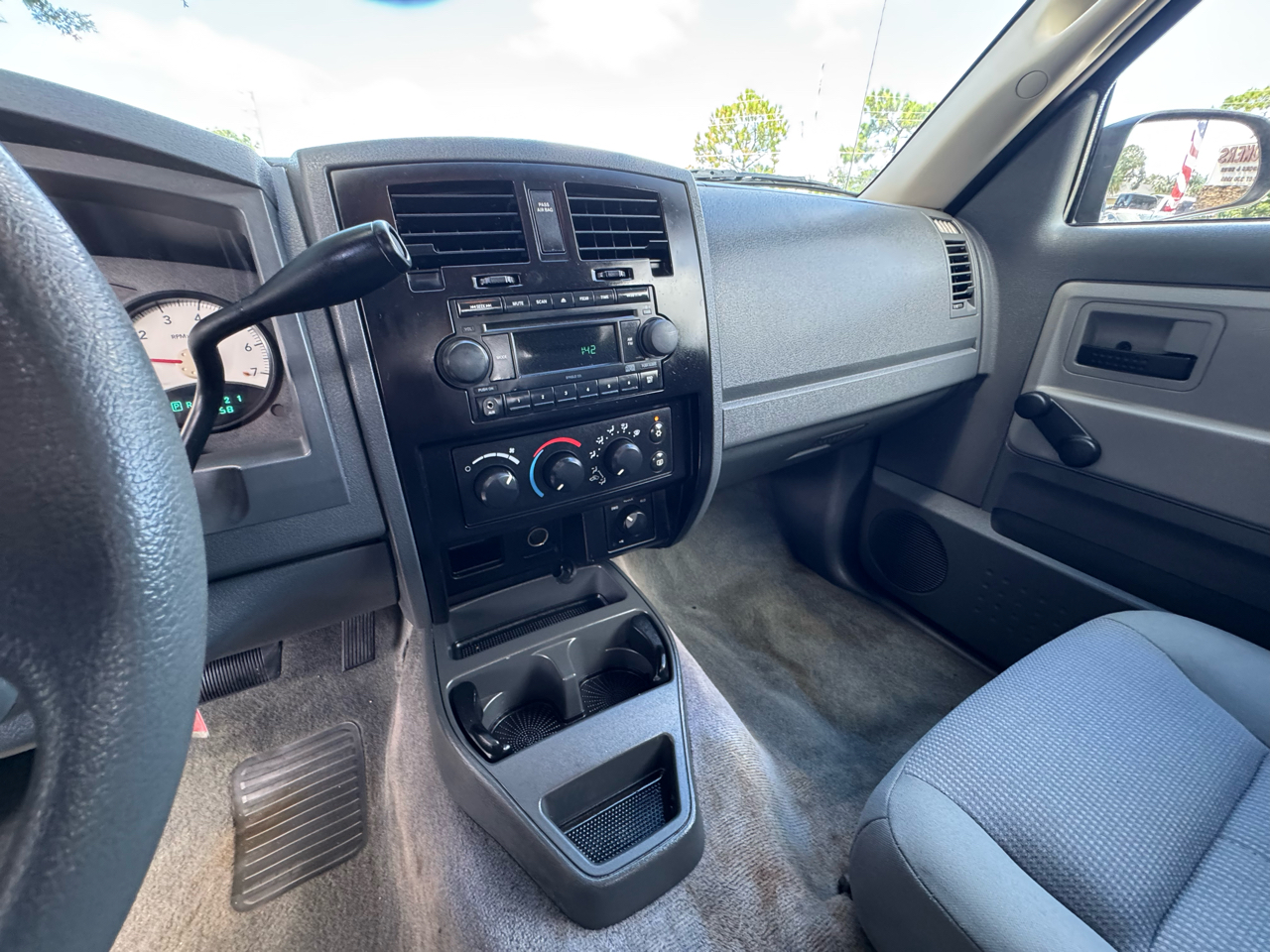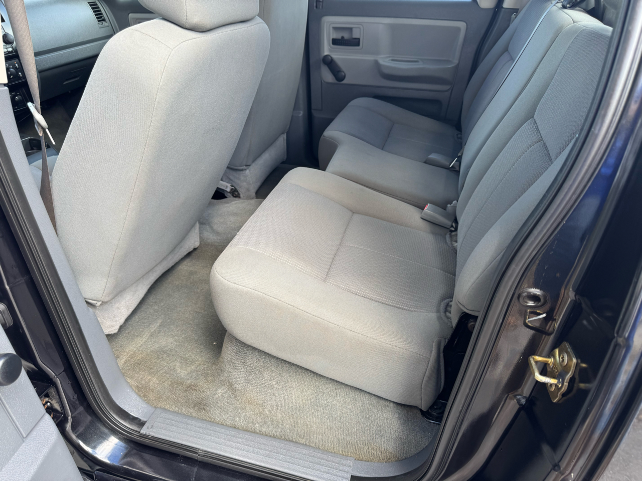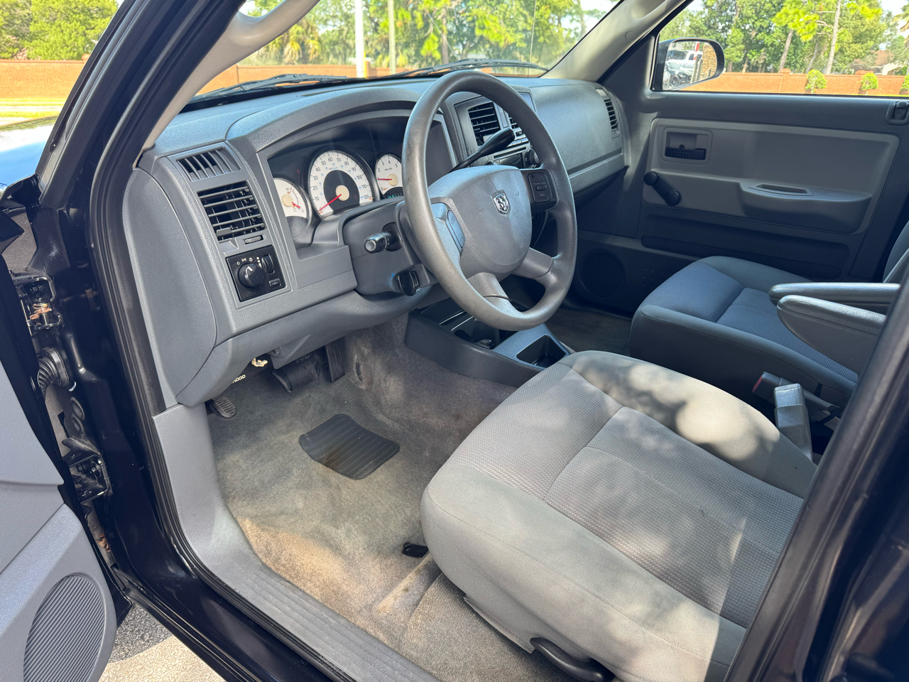 This Black 2006 Dodge Dakota is ready for your next adventure! Equipped with a powerful 3.7L V6 "Magnum" engine and Four wheel drive, this truck is perfect for tackling tough terrain. With its NV233HD 2-speed electronic shift-on-the-fly transfer case, you can easily switch between drive modes for maximum control. Whether you're hauling equipment or just cruising around town, the 5.3' pickup box and 6010# GVWR have got you covered. The sleek dark gray exterior is complemented by halogen headlamps and 16" styled steel wheels, giving this Dakota a stylish look. Hop in and enjoy the comfortable interior with amenities like air conditioning, AM/FM stereo with CD player, and 60/40 split folding rear bench seat. Safety is a top priority with driver and front passenger airbags, 3-point seatbelts, and LATCH child seat tether anchors. Plus, a carfax report is available for added peace of mind. Don't miss out on this versatile and reliable Dodge Dakota - it's ready to hit the road with you!
